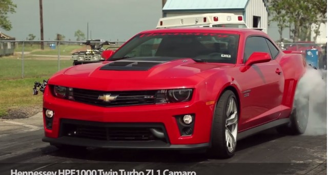 Boost, more boost, and a whole lotta car. That's the Hennessey Performance Engineering take on the Camaro ZL1 shown here testing its new twin-turbo setup in some quarter-mile testing.