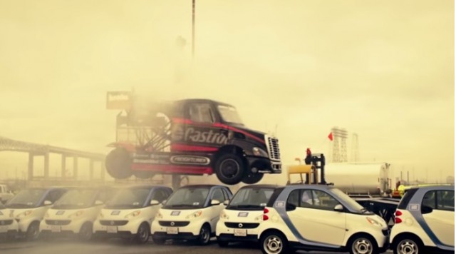 Size Matters 2: The Jumping/Drifting Semi Truck Is Back At Work In New VideoLiterally nothing in this video makes logical sense, but it's still 100% perfect. Mike Ryan and the Banks Super-Turbo Castrol Freightliner (which you might know from Pikes Peak) don't bother defying physics with their house-sized antics--they just take physics' lunch money and dump it in the trash...