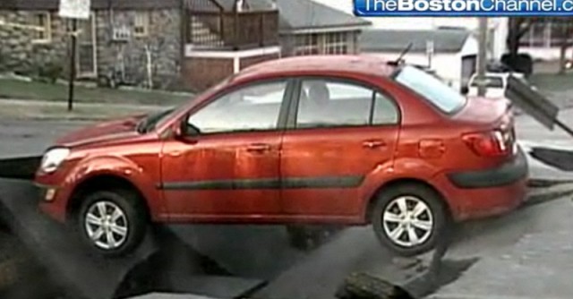A Manchester, New Hampshire driver got the morning commute from hell today, cruising down Beech Street and straight into a large sinkhole.