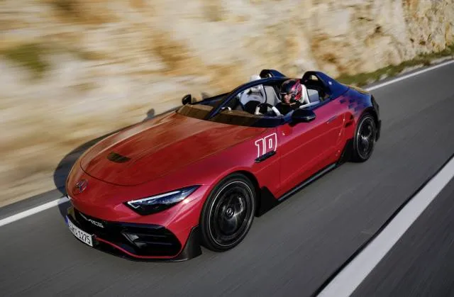 Mercedes launches Mythos series with AMG PureSpeedMercedes-Benz's new AMG PureSpeed speedster brings F1's halo protection system to production cars.