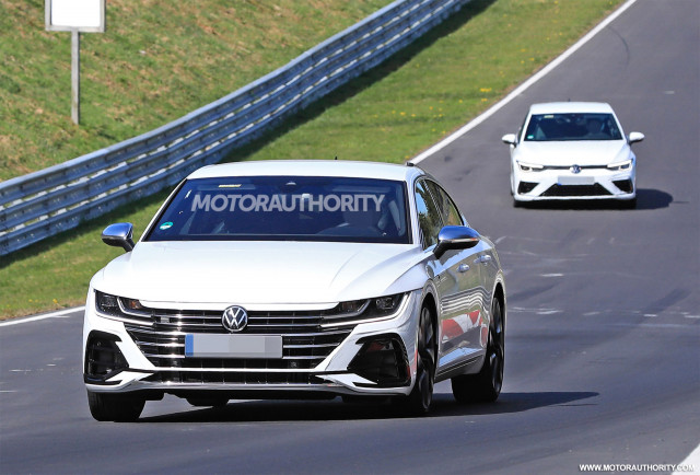 2021 Volkswagen Arteon R spy shots and videoThe speedy fastback sedan is expected to boast a new turbocharged V-6 with over 400 horsepower on tap.