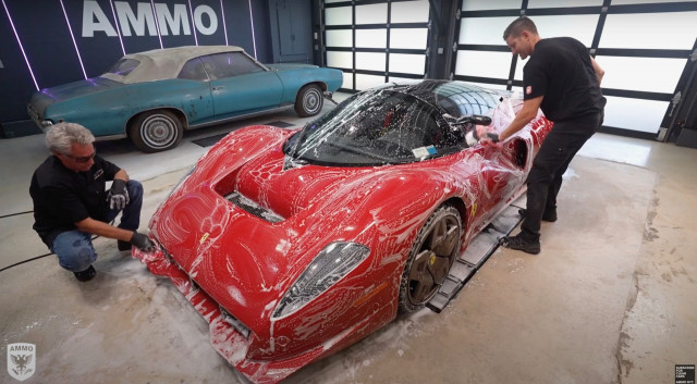 Watch the rarest Ferrari in the world get washed and detailedThe Ferrari P4/5 is a one-off car built by Pininfarina for Jim Glickenhaus. Driven regularly, it needs a good cleaning and detailing, and Ammo NYC founder Larry Kosilla goes deep into the process in this video.