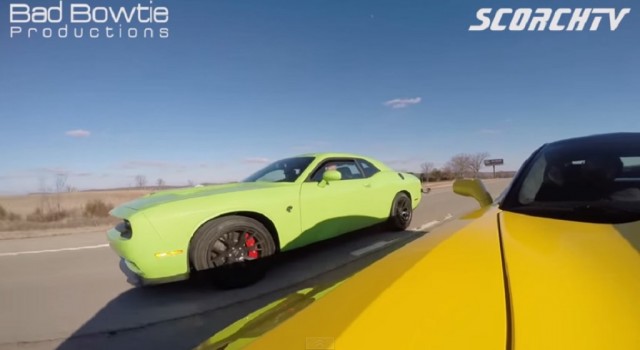 Freeway Three Way: Corvette Z06 Vs. Challenger SRT Hellcat Vs. Mustang Shelby GT500Now, you wouldn't think pitting three of America's most powerful cars against each other on a public road would be a good idea—and you'd be right. MUST WATCH: Drifting On Ice With The Porsche 918: Video For three-pedal fans keeping score at home, each of these drivers is rowing his own gears...