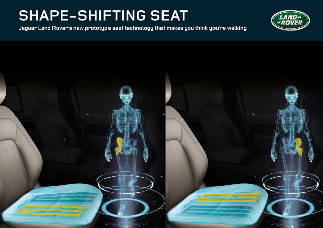 Jaguar Land Rover created a shape-shifting seat to make you think you're walkingThe company is researching actuators in seats that could stimulate muscles to avoid the health risks associated with sitting for too long.