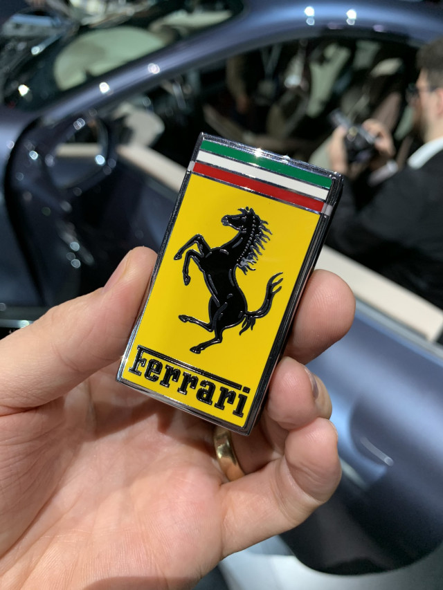 The Ferrari Roma's key is just a Ferrari badgeThe Ferrari Roma's key is both simple and flashy.