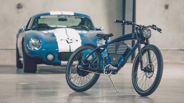 Vintage Electric commemorates "Ford v Ferrari" with 48-volt Shelby bikeThe Vintage Electric Shelby throttle bike is an electric two-wheeled tribute to Shelby's 1960s race cars.
