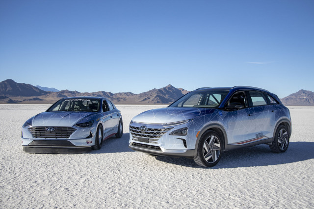 Hyundai engineers aim high with green cars at BonnevilleHyundai set new land-speed records in the Nexo fuel-cell vehicle and the Sonata Hybrid at Bonneville.